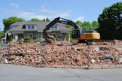 Workers from Empire Services of Reading tear down the old Neffs Hotel on May 15. The property is owned by Neffs Bancorp Inc., the parent company of The Neffs National Bank. According to bank President and CEO Kevin Schmidt there are no formal plans for the property at this time.PRESS PHOTOS BY SUSAN BRYANT