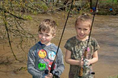 ABOVE: Aidyn Kresge, 5, of Palmerton, and her cousin, Ava Stevenson, 5, of Slatington, took part in the recent South Whitehall Township Parks and Recreation Department's fishing derby at Covered Bridge Park. Copyright - Lou Wheeland Photography