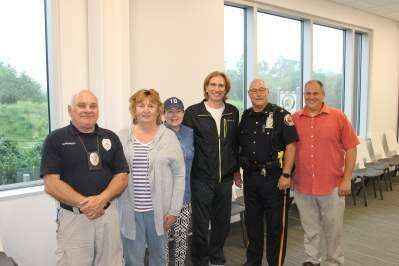 PRESS PHOTO BY PAUL CMILFrom left, Tony Lopsonzski Sr., Catasauqua Borough code enforcement officer; Barbara Schlegel, Catasauqua Borough mayor; Sherrie and Mark Yastrop, real estate agents; Douglas Kish, Catasauqua police chief; and Brian Riedy, pastor of Holy Trinity Memorial Lutheran Church, Catasauqua, gather for a group photo at the Dogs with the Defenders community-police meeting, held May