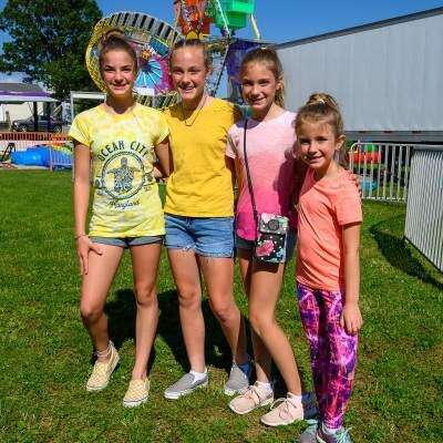 PRESS PHOTOS BY LOU WHEELANDAbove: Ella Hesener and Allison Hunsberger, both 12; Emeryson Hesener, 11; and sister Charlotte, 7; are ready for some fun at the 36th annual Schnecksville Fair held June 18-22. The Hesener sisters are from Slatedale. Allison Hunsberger is from Laurys Station. Copyright - Lou Wheeland Photography