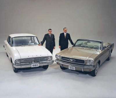 Iacocca, as Ford Motor Co. Ford Division General Manager, backed the Mustang project: one-part Ford Falcon compact car platform with Ford Fairlane mid-size car interior, chassis, suspension and drivetrain components, and one-part T-Bird concept car inspired styling.