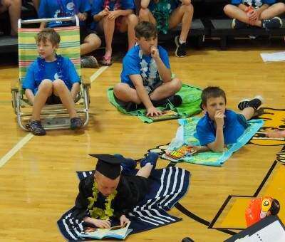 PRESS PHOTOS BY LINDA DEIBERTNorthwestern Elementary third-grade students recently performed “Beach Day.” The musical, written and directed by music teacher Shawn Fies returned to the stage this year as it was a school favorite. Allan Dimler, Brennen Scott, Devin Rex, Chase Sukanick perform a scene from the show.