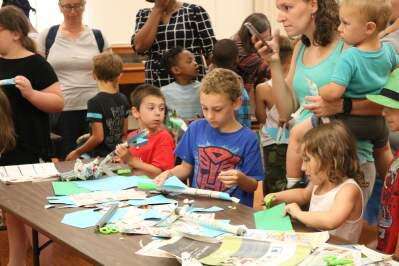 Summer reading program participants design their rockets for launch during the Da Vinci Science Center rocket launch program, held July 9 at Public Library of Catasauqua, 302 Bridge St.