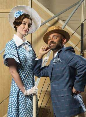 From the bright, brassy, intense nine-piece orchestra conducted by Music Director Bryan L. Wade; to the classy, sassy tap-lines, of Choreographer Shelley Oliver; to the charming ocean liner set, which opens up like a pop-up book, by Scenic Designer John Raley, combined with Lighting Designer Gertjan Houben, to the profusion of women’s gowns, men’s suits and accessories by Costume Designer Michael McDonald, the show is dazzling.