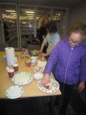 Parkland Teen Librarian Amanda Evans made fruit, meat and vegetable toppings and cheeses available for the teen to make some delicious choices.