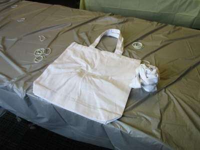 Their next step was to place the paint-saturated tote into a plastic bag and take it home to set for three days.
