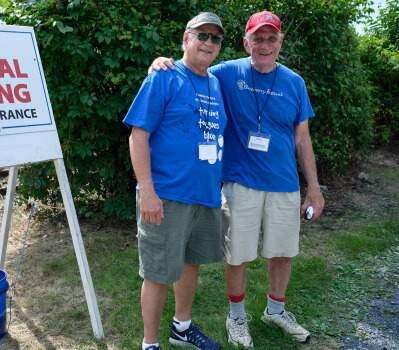 Volunteers are essential to the festival's success. Bob Wisser, left, greets Tony Favinger, who has been volunteering for all 32 years of the Festival's existence. Copyright -