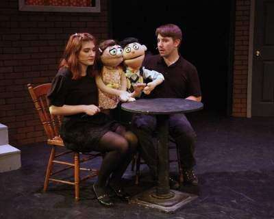 CONTRIBUTED PHOTO BY NICK ENGLESSONAlessandra Fanelli, who works the Lucy the Slut puppet, and Chris Camargo, who works the Trekkie Monster puppet, in “Avenue Q,” through Aug. 11, Pennsylvania Playhouse, Bethlehem.