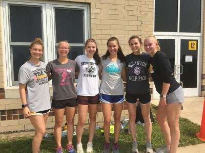 PRESS PHOTOS BY LINDA DEIBERTFormer high school girls track/cross country members who came to help with the 5K run included Alena Smargiassi, Alyssa Zack, Sara Hathaway, Addie Consuelos, Brooke Devers and Abby Chisdak.