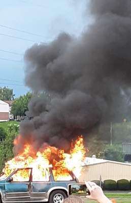 Freemansburg firefighters set a controlled blaze in a junked suv and demonstrated how they put out the blaze.
