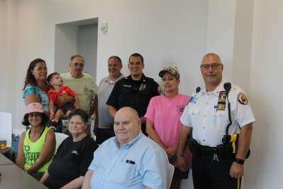 PRESS PHOTO BY PAUL CMILJoanne and Eugene Brown are the latest members to join the police/community gatherings, held monthly at various locations in Catasauqua Borough. Eugene is a former Hellertown police officer who settled into Catasauqua Towers. The July 18 event, dubbed Pizza with the Police, was held in the community room of the municipal complex, 90 Bridge St. Catty Pizza provided the food.