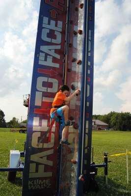 Clark Raymond of Fogelsville tries his climbing skills at the face-to-face race wall Aug. 6 at Upper Macungie's National Night Out in Lone Lane Park. This family fun event celebrates the relationship between police, the community and businesses they serve.