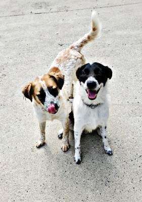 Oreo is a 1-year old male border collie mix. He is very sweet, loving and playful. He is very shy at first, but warms quickly. He loves other dogs, especially Lady (his BFF) who is an 11-month- old cattle dog mix and is also shy at first. They warm to people much more quickly when they are together and would be wonderful if adopted as a pair.