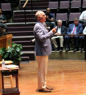 U.S. Senator Bob Casey visited Northampton Community College’s Lipkin Theatre Aug. 21 for a town hall attended by a friendly but small audience of about 100 people, including Democratic area elected officials. Over the course of an hour, the usually soft-spoken legislator responded to a host of questions on topics extending from the electoral college to infrastructure.