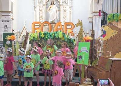 Area children attend Vacation Bible School at Grace Lutheran Church, 28 W. Main St., Macungie, Aug. 12 through 16. The theme of this year's Vacation Bible School was Roar! Life is Wild, God is Good! ABOVE: During the finale, children sing the songs they learned during Vacation Bible School.