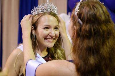 Ayla Blatt, left, of Kutztown was crowned 2019 Great Allentown Fair Queen at the RCN Farmerama Theater, Aug. 27, “Preview Night,” at the Allentown Fair. The crown was presented by McKenzie Hagenbuch, right, 2018 Great Allentown Fair Queen. The six contestants, including Blatt, were Samantha Ciommo, Allentown; Melissa Fatzinger, Allentown; Emily Lamana, Allentown; Madison Short, Orefield, and