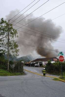 Greenawalds, Woodlawn, Cetronia and Tri-Clover volunteer firefighters worked together on Aug. 28 to extinguish a scrap metal fire at South Whitehall Salvage, 2000 Minnich Road. An additional photo appears on page A2.PRESS PHOTO BY SUSAN BRYANT