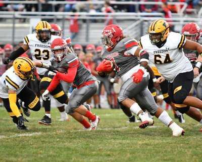 Freedom’s powerful offensive line and skillful backfield took the stage and came through when they needed to most and killed off the final 6:38 off the clock to hang on for the victory.