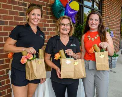 PRESS PHOTOS BY LOU WHEELANDGreeting visitors to the ribbon-cutting ceremony Aug. 21 at Ross Plants and Flowers, Fogelsville, were employees Lisa Dunne and Kathy Winters, as well as Liz Martin from the Greater Lehigh Valley Chamber of Commerce. Copyright - Lou Wheeland Photography