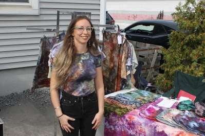 Holly Bolger displays her collection of custom tie-dyed tops during a flea market Aug. 31 at Jupiter Crush, 16 W. Race St., Catasauqua.