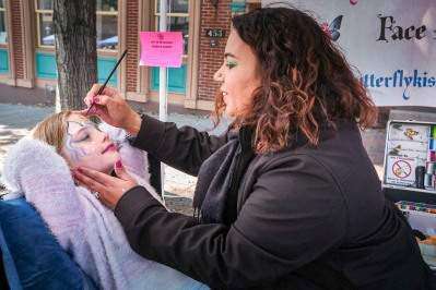 PRESS PHOTOS BY DENNIS GLEWJennifer Metcalf, proprietor of Butterfly Kisses face-painting stall, turns Madison Murphy of Emmaus into a very pretty unicorn. More photos on page A2.