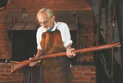 press photo by ed courrierBlacksmith Phil Trabel holds one of two custom hooks he forged for a customer Sept. 4. at the 1750 Smithy at Main Street and Ohio Road. Run by Historic Bethlehem Museum & Sites the reconstructed smithy is used by trained blacksmiths for metalworking demonstrations, blacksmithing classes, and to perform custom work. For more information, visit historicbethlehem.org or call Copyright - &Copy; Ed Courrier