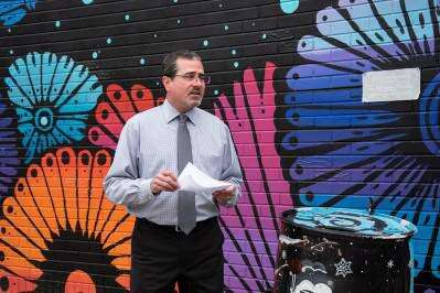 William Alexander Karras, chief of staff for Bethlehem Mayor Robert Donchez, and Northhampton County Executive Lamont McClure spoke at a special event to dedicate a mural highlighting mental health recovery at Cafe the Lodge Sept.