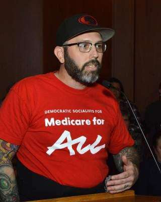 Several citizens spoke in support of the Medicare for All resolution, among them Anthony Downing, who, wearing a back brace, had slowly approached the lectern. “As a working-class person in Bethlehem who is also a union member and union staff member, I am in gripping debt due to my own medical costs.”