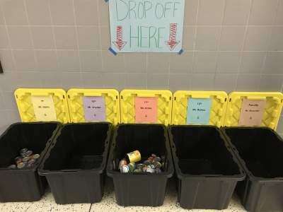 This year for the annual food drive, Salisbury High School collects 1,128 cans to donate to the Allentown Area Ecumenical Food Bank. Assistant Principal Brian Muschlitz received the most cans, so he will be wearing the Falcon suit Nov. 27.PRESS PHOTO BY PAIGE MATHIEU