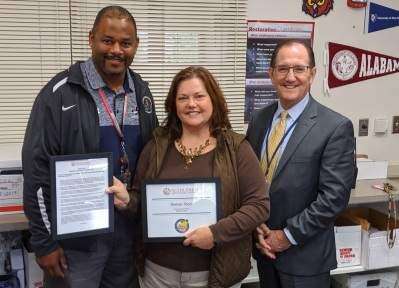 Press photo courtesy BASDDenise Tocci with Liberty HS Principal Harrison Bailey and Superintendent Dr. Joseph Roy.