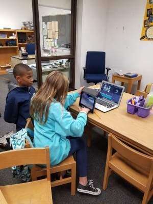 PRESS PHOTO BY REBECCA FOEHRKOLBWestern Salisbury Elementary School students, under the direction of teacher Matthew Ritter, learn the ins and outs of iMovie in an after-school club at the school. ABOVE: Shawn Barker and Tessa Kemmerer hone their skills as moviemakers. See Page A10 for an additional photo.