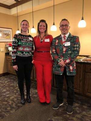 From left, Ashley Simitz, Cara Butz and Bill Raven, all on Whitehall Area Chamber of Commerce's board of directors, gather for a photo at the Chamber's holiday luncheon, held Dec. 11 at Fellowship Community, Whitehall.Press photos by Stacey Koch