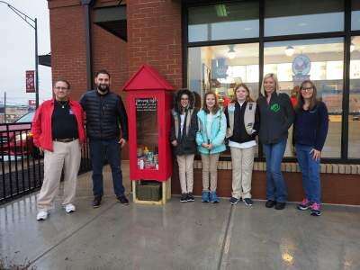 The first obstacle was finding a place for the Blessing Box. During the troop’s visit to the Chick-fil-A on MacArthur Road in Whitehall to see how a business is run, owner John Velarde told the girls they could put it in front of the restaurant.