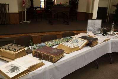 The display also included old leather-bound Bibles, as well as several notebooks kept by the Rev. James A. Little, who served the church from 1869 to 1917.