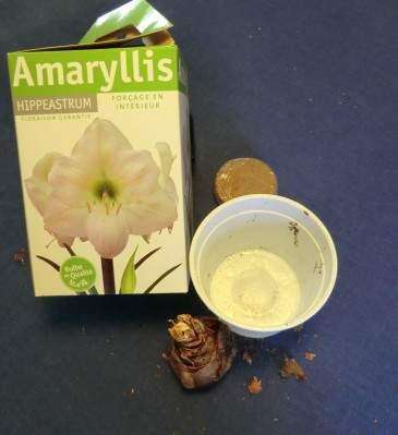 Some amaryllis can be purchased already potted. Follow the package directions for water and light conditions. If you want more variety, you can purchase bulbs and pot them. It takes about 8 to 12 weeks from planting to blossom time.