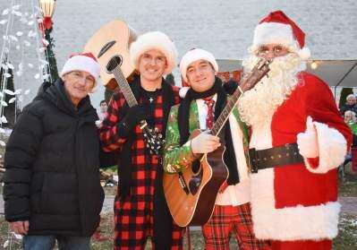 Press photos By TINAMARIE MARTINCoplay Borough Councilman Steve Burker; Ted Donatelli and Michael Rauscher, with A Pair of Aardvarks; and Santa Claus get into the holiday spirit with an old-fashioned Christmas event, held Dec. 21, 2019, at Coplay Community Plaza, North Second and Chestnut streets. Steve Gyscek, of Whitehall, provided the entertainment of St. Nick.