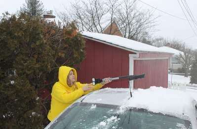 PRESS PHOTOS BY PAUL CMILMaggie Richardson, of Catasauqua, clears the snow off her car Jan. 18, when a couple of inches fell on the Lehigh Valley. Just a week earlier, the region enjoyed unusual but pleasant temperatures.