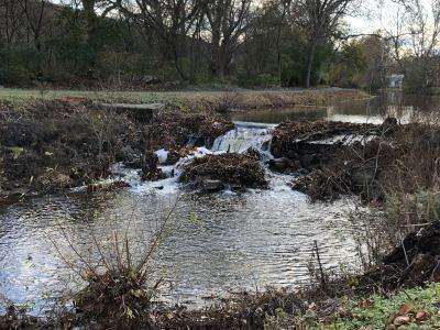 press photo by charone frankelThe dam managing the flow of the Lehigh Canal near Nancy Run Creek may need replacement due to wood rot.]