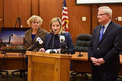 At a Feb. 5 press conference in city hall, Bethlehem Mayor Robert Donchez and Pennsylvania Senator Lisa Boscola lent their support to the transfer of acreage to the site.