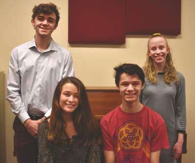 Moravian Academy “State Fair” cast includes, from left: Will Bingham (Abel Frake), Deborah Katz (Margy Frake), Aidan Reese (Wayne Frake) and Emma Gross (Melissa Frake). Copyright - &Copy; Ed Courrier