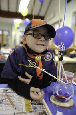 Jax Coffin, a Tiger Scout with Cub Scout Pack 94, checks out the goldfish on his table during the Blue and Gold Banquet, held Feb. 22 at Holy Trinity Memorial Lutheran Church, Catasauqua. This annual event honors Scouts' achievements and recognizes the volunteer efforts of leaders and parents.