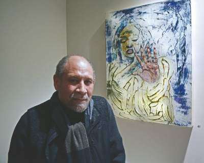 PRESS PHOTO BY ED COURRIEREaston-based artist Curlee Raven Holton with “Stop, Lost Series” (2020, acrylic on board, 24 in. x 30 in.) at his “My Journey, A Visual Diary” exhibition, Mezz Gallery, Renaissance Hotel, Seventh and Hamilton streets, Allentown. Forty-one works, including oils, acrylics, watercolors, pencil and ink drawings, serigraphs, lithographs and mixed media are from the retired Copyright - &Copy; Ed Courrier