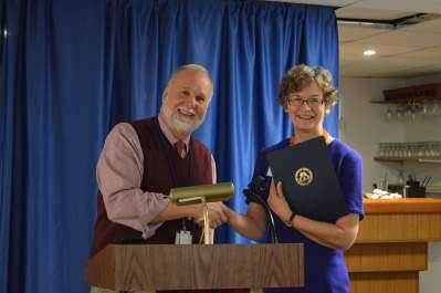 Following the presentations, Jordan, as Catt, in full suffragette regalia, swept into the room and took the audience on a journey of discovery. She wove details of her personal life into the story of her development from farm girl to tireless suffragette to founder of the League of Women Voters.