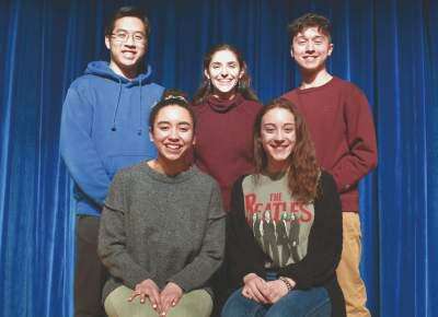 Salisbury's “Into the Woods” cast includes, from left, front: Gabriella Lozada (Baker's Wife) and Ryann Thomson (Cinderella) and back, Michael Tiao (Baker), Eliza Wiener (Witch) and Michael Judge (Cinderella's Prince). Copyright - &Copy; Ed Courrier