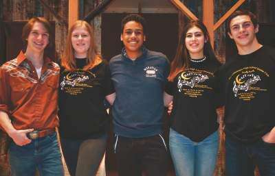 Catasauqua High School's “Crazy for You” cast includes, from left, Lank Hawkins (Kaleb Croft), Irene Roth (Valerie Davidheiser), Luis Saint-Amand (Bobby Child), Hannah Korzybski (Polly Baker) and Bella Zangler (Ben Langsdorf). Copyright - &Copy; Ed Courrier