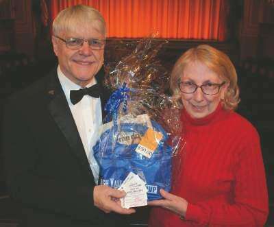 PRESS PHOTO BY ED COURRIERRoxy Theatre owner Richard Wolfe, left, presents Emmaus resident Mary Hoffman, right, with the “Readers Pick the Oscar Winners Contest” prize package inside the historic movie house. Hoffman was the only entrant to correctly pick six winners in the seven Oscar categories in the Lehigh Valley Press Focus section contest. She received a Lehigh Valley Press tote filled with Copyright - &Copy; Ed Courrier