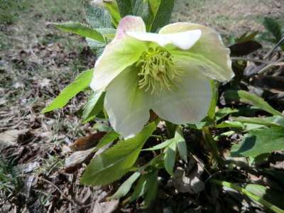 H. niger, commonly called the Christmas Rose, gets its name from its black root. It has leathery green or blue-green leaves, depending on the species, and produces white flowers. It does not bloom at Christmas in our climate. It typically blooms in late January or February depending on the weather. It is evergreen and grows to about 12-inches-tall.