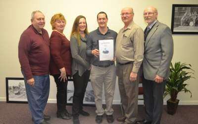 PRESS PHOTO BY AL RECKERThomas Reenock, Northampton mayor; Barbara Schlegel, Catasauqua mayor; Rachel and Christopher Fine, of DRC Technologies; William Molchany, North Catasauqua mayor; and Michael Harakal Jr., Whitehall mayor, gather at the Mid Eastern Counties Association of Boroughs meeting, held Feb. 26 at the North Catasauqua Municipal Building. DRC Technologies, of Northampton, presented on
