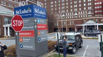 Emergency responders participate in a parade April 4 to show their support for workers on the front line of the COVID-19 pandemic at St. Luke's University Health Network in Fountain Hill. RIGHT: St. Luke's University Health Network staff wave to the emergency responders during the parade of support April 4. Additional photos appear on Page A2.PRESS PHOTO BY SARAH TAKACS