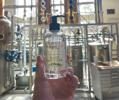 After fielding phone calls from the Department of Defense, Homeland Security and other government offices, Eight Oaks Farm Distillery ramped up production between April 4 and April 9. According to Butters, they are producing 15,000 bottles of the hand decontaminant per day.